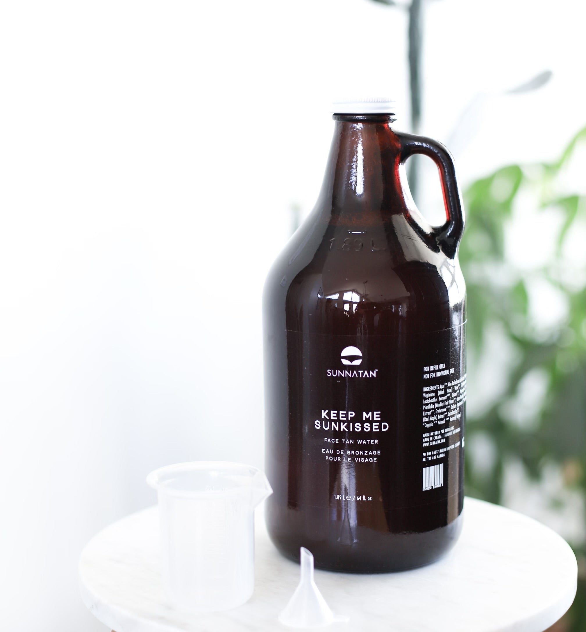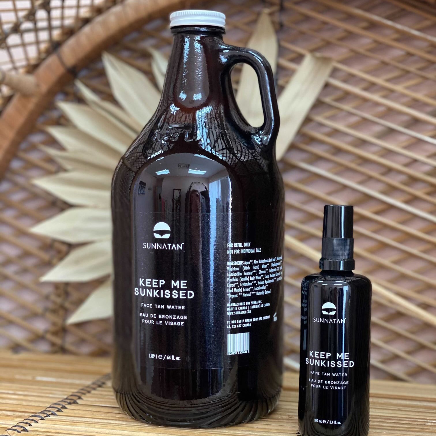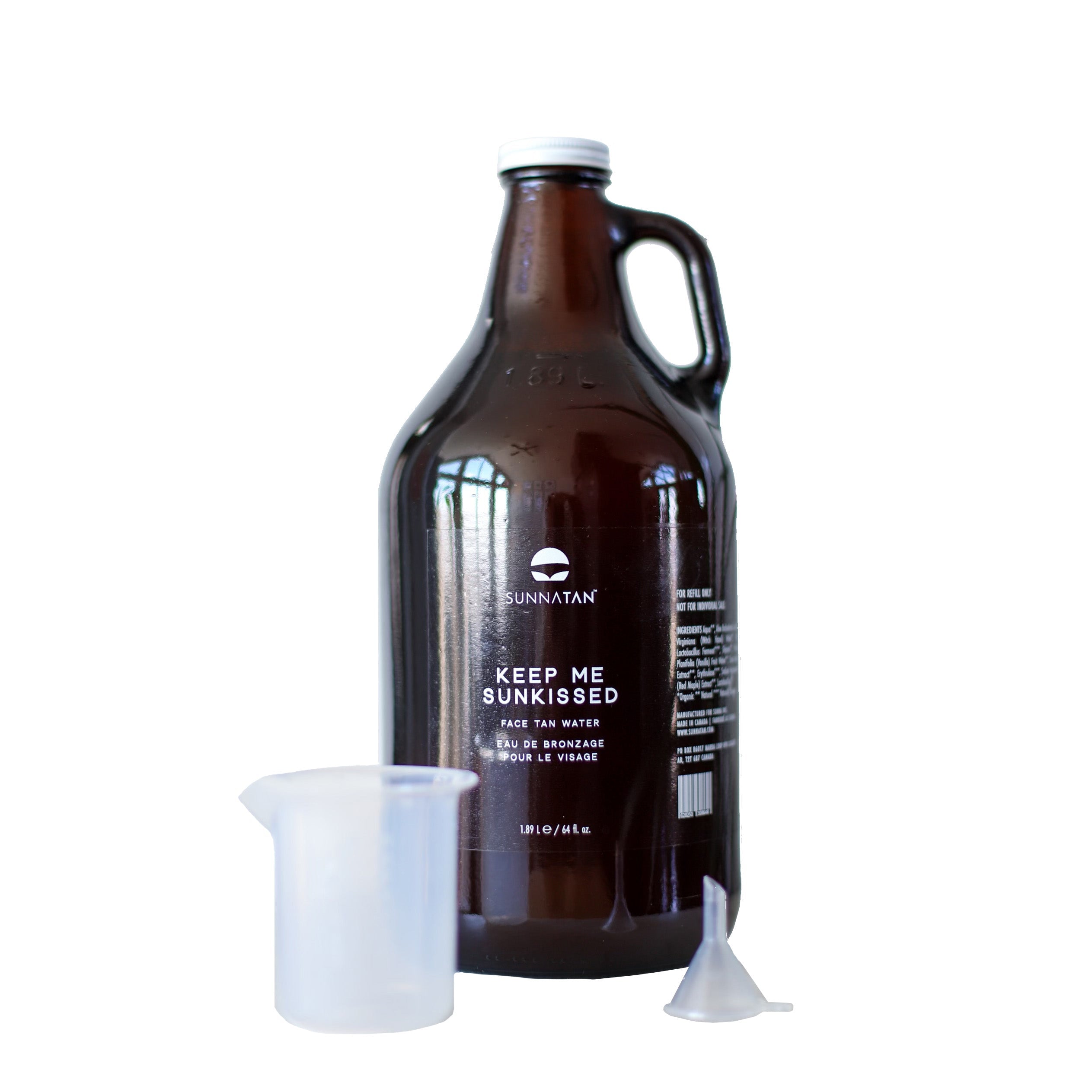 Face Tan Water half a gallon refill will fill 20 Face Tan Waters. The cost for you per fill is $14.50 a unit. You would sell a refill to your clients for $29 that is a $10 savings for them