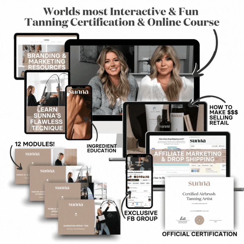 - Access to our affiliate & drop shipping programs (earn income selling SunnaTan online)